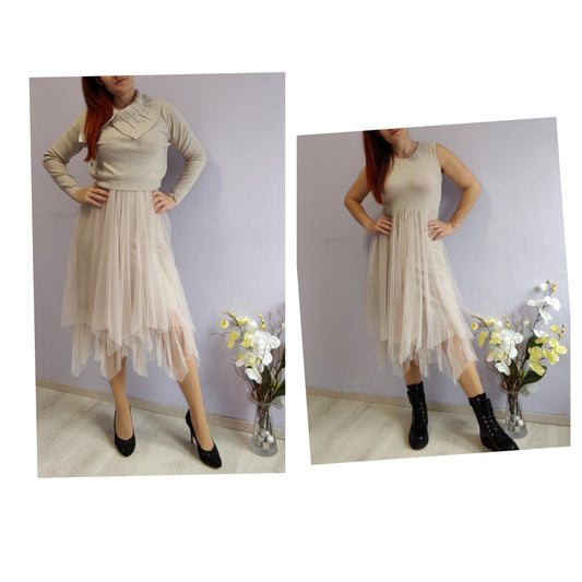 Dvodelna pletena obleka s tilom