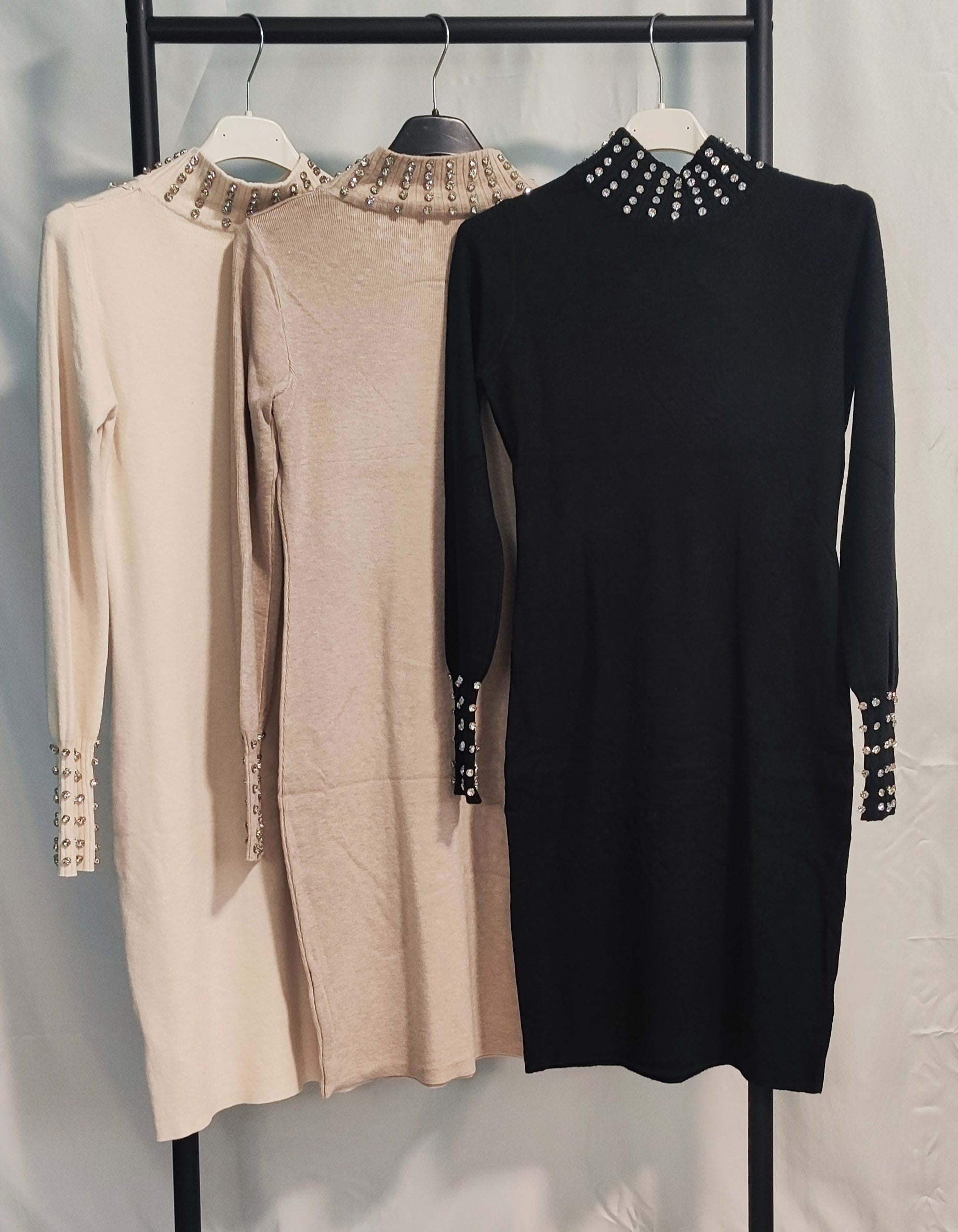 - Okrasni biseri na ovratniku in rokavih za eleganten videz